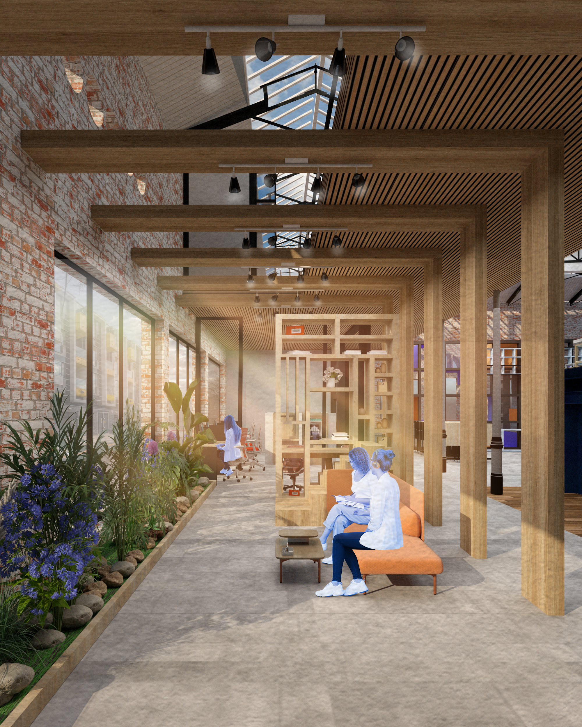 My final year project centred around transforming a Grade II listed building in Manchester into an archive space. This was a fascinating project, as rather than delivering this work for a client, we were given an object that we needed to create an archive space for. My object was the Walkman, which meant I designed the interior to complement sound and music, using wood throughout to absorb sound and celebrate the building’s historic features – blending new and old. I was also keen to make the space as sustainable as possible, so I re-used existing materials and recycled fittings wherever feasible.